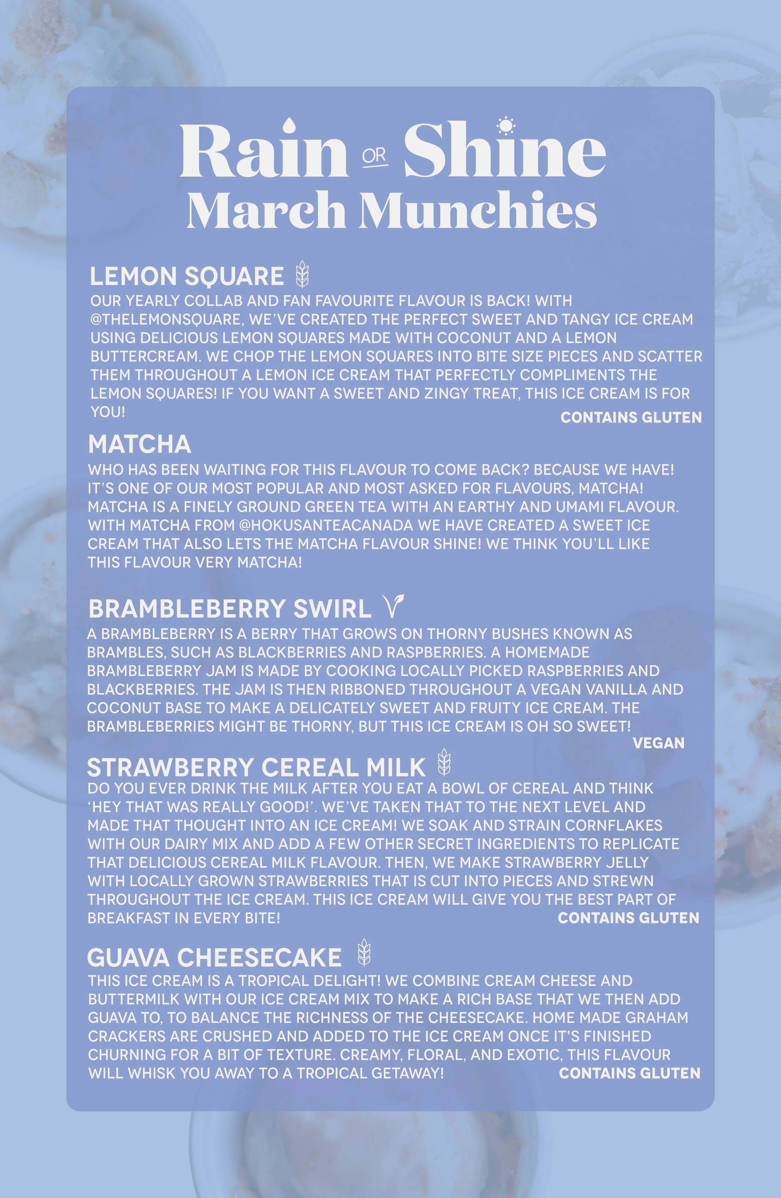 Flavours do change quicker than the Internet so best to follow us on Instagram for the latest news and seasonals.